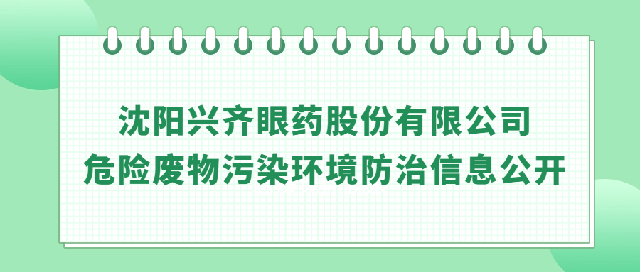 沈阳兴齐眼药股份有限公司 危险废物污染环境防治信息公开
